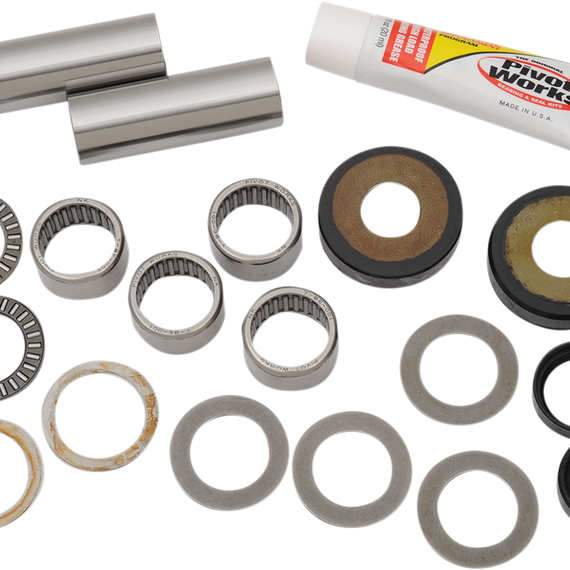 Caracteristicas: Restore handling and suspension control lost due to worn or rusted swingarm components Convenient kit eliminates looking up many part numbers Each kit contains bearings, pins, collars and seals manufactured to OEM specifications for a perfect fit Considerable savings over OEM prices