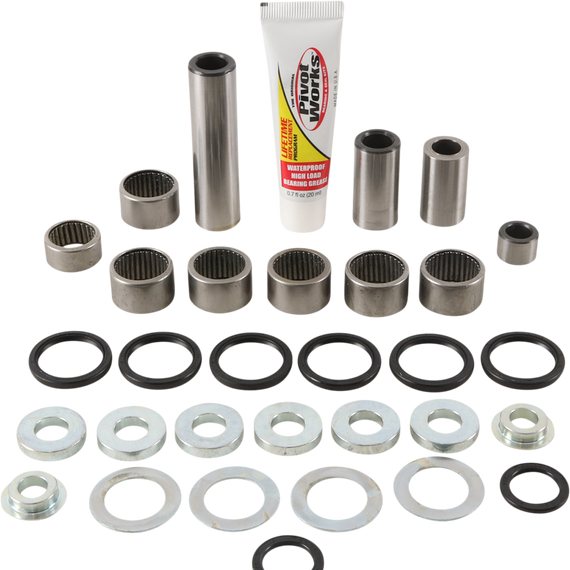 Caracteristicas: Restore handling and suspension control lost due to worn or rusted swingarm components Convenient kit eliminates looking up many part numbers Each kit contains bearings, pins, collars and seals manufactured to OEM specifications for a perfect fit Considerable savings over OEM prices