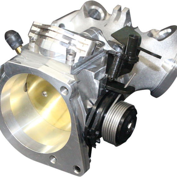 Caracteristicas: Brass throttle blade and shaft resist deflection, which helps maintain throttle position accuracy Completely replaces OEM throttle body and manifold; fully compatible with OEM components Specifically designed for larger cubic inch motors that require substantial airflow Equipped with a sealed double roller bearing for smooth throttle operation Feature a natural finish with split shaft design and stainless steel spring Large plenum design maximizes mid- and high-rpm power Fully machined and ported internally for unparalleled flow Made in the U.S.A. Size given for throttle bodies is measured at the butterfly.