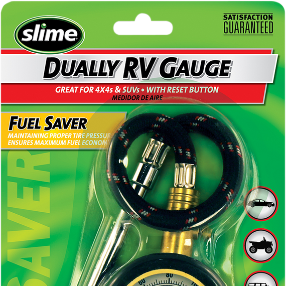 Caracteristicas: Features easy-reach dual foot chuck and reset button Shock resistant rubber housing Fits on a Schrader valve stem