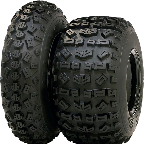 • Well-designed tread pattern with square-edged knobs alternating between rows of straight knobs and inverted V's