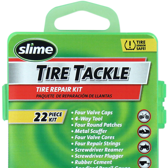 Caracteristicas: Everything needed to repair or patch a tire in one convenient kit The kit includes four valve cores, one 4-way tool, four anodized valve caps, three plug repair strings, one 10-50 psi pencil gauge, one screwdriver reamer tool, one screwdriver plugger tool, five 1-3/8" round patches, one metal scuffer and one .41 oz. rubber cement tube