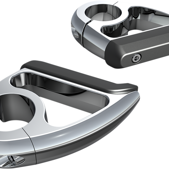 Caracteristicas: These elegant toe rests mount directly to the engine guard allowing you to keep your heel on the floorboard with a secure place for your toe on the engine guard This is a comfortable and popular riding position because it allows you to stretch out while also keeping your feet close to the controls. Protrudes out past the engine guard creating a wide point Designed with a smooth curved outside profile Rubber portion is designed with a raised end to provide secure footing Unique open design provides an ancillary tie down point