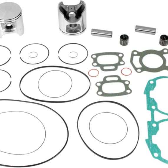 • Include pistons, rings, pins, clips, racing needle bearings, head and base gaskets, intake and exhaust gaskets