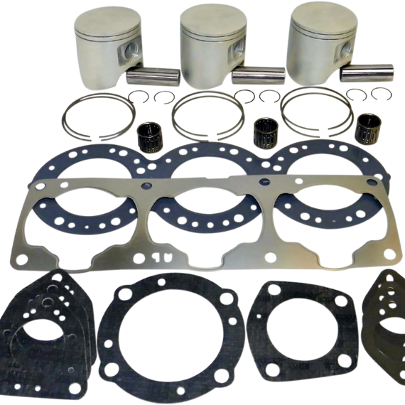 • Include pistons, rings, pins, clips, racing needle bearings, head and base gaskets, intake and exhaust gaskets