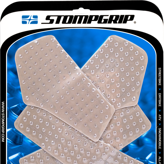 Caracteristicas: Make gripping your ride incredibly easy for increased bike control with more contact between bike and rider Provides more lower body grip and less upper body stress Ultra-clear proprietary elastomer material means paint and graphic remain visible through traction pads Non-abrasive material; designed to wear down and be replaced like a tire Will not wear down leathers as compared to grip tape Pre-molded with rounded edges that resist peeling Super-strong 3M™ peel-and-stick adhesive Made in the U.S.A.