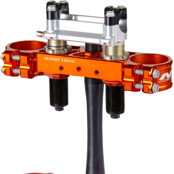 Caracteristicas: CNC machined from aerospace quality Tridium alloy Handlebar clamp included Easy to install; pre-pressed Pivot Works lower bearing included The industry's first air-adjustable, oil-damped suspended handlebar clamp, offering 10mm of travel Improve the riding comfort and decrease arm pump Developed in collaboration with top US MX/SX and MXGP teams No service required Torque settings etched on clamps Patented in Europe and USA High-pressure air pump required to adjust the clamps