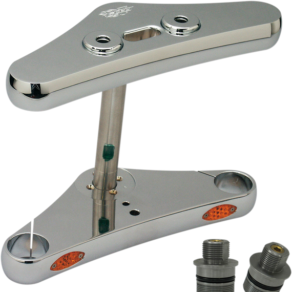 • Includes handlebar dampers with chrome billet caps, a fork stem, and all the necessary mounting hardware