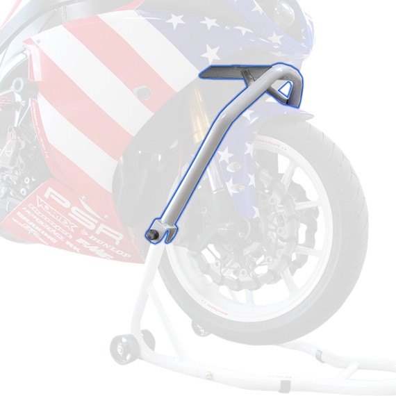 • Lifts front end from under the lower triple clamp with a model specific pin (not included)