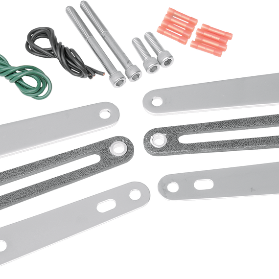 Caracteristicas: Specific-fit kits relocate stock turn signals further back by extending the chrome fender rail