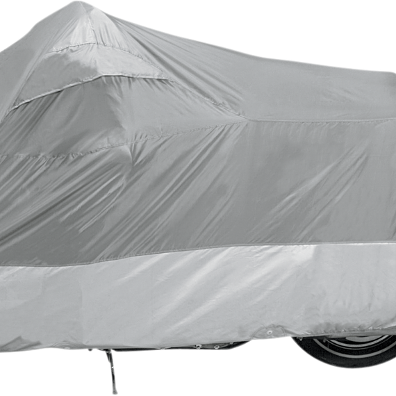 Caracteristicas: Lightweight polyester material is waterproof to protect your bike from moisture Reinforced grommets for cable or bar locks and elastic bottom rim for snug fit Storage bag included Sewn-in vent flap lets moisture escape