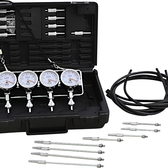 Caracteristicas: Includes storage case, rubber hoses plus 5 mm and 6 mm adapters with extensions 2" gauges featured 0-76cm/hg readings Built-in restrictions eliminate needle bounce