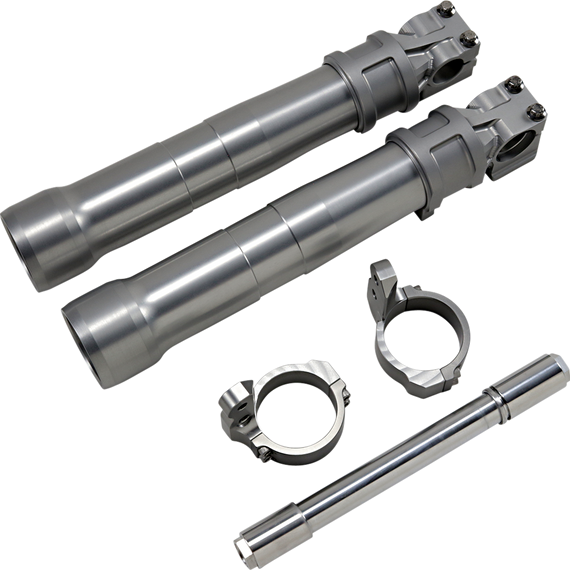 Caracteristicas: All components feature billet aluminum construction Fender mounts are adjustable to allow exact fender placement Kits include a cad plated chromoly 25 mm front axle Caliper mounts are available for radial calipers with a 108 mm bolt pattern or '08-'20 OEM-style Dresser calipers Mounts are designed for use with 11.8” or 13” rotors Caliper mounts and calipers sold separately Made in the U.S.A. Will require custom wheel spacers.