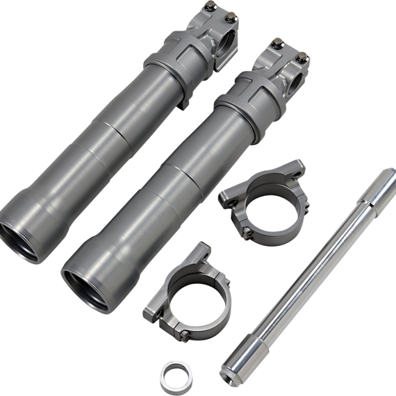 Caracteristicas: All components feature billet aluminum construction Fender mounts are adjustable to allow exact fender placement Kits include a cad plated chromoly 25 mm front axle Caliper mounts are available for radial calipers with a 108 mm bolt pattern or '08-'20 OEM-style Dresser calipers Mounts are designed for use with 11.8” or 13” rotors Caliper mounts and calipers sold separately Made in the U.S.A. Will require custom wheel spacers.