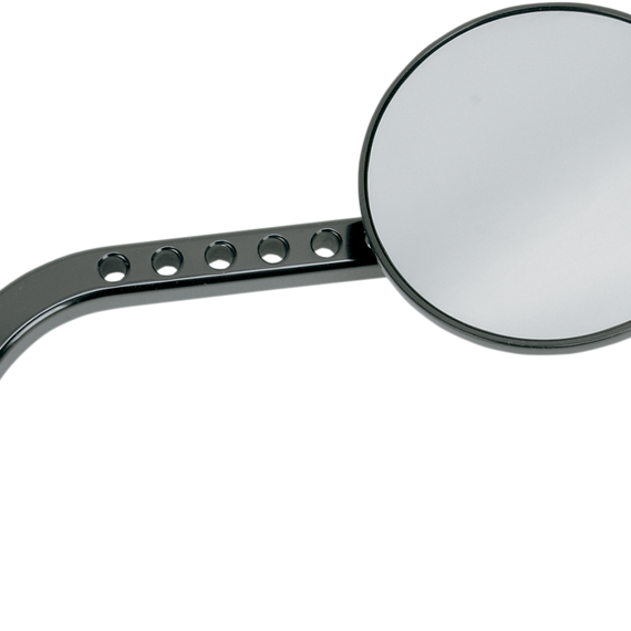 Caracteristicas: Fully adjustable 3-1/4" diameter mirror heads have ultra-exceptional rear visibility due to the use of custom-made convex mirror glass Retro style "holes" along the stem for lightness Completely CNC machined from billet aluminum (not cast), lightweight, and strong Swivel mirror head assembly is completely serviceable and is machined from a stainless-steel alloy ball that rides in a special polymer base to ensure super smooth action and corrosion free operation Direct bolt-on fit for 1984 - 2020 Harley hand controls (including V-Rod) and most aftermarket hand controls Mounting hardware is included Made in the U.S.A.
