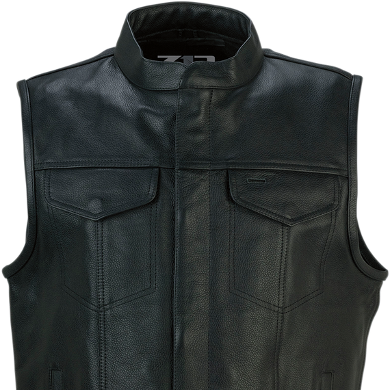 Caracteristicas: Premium 1.1-1.2mm full grain cowhide leather Metal snaps and concealed zipper front closure One piece seamless leather back panel with zipper access for easy embroidery or patch application Two interior concealed carry pockets; two hand warmer pockets Two chest pockets with snap closures and two hand warmer pockets Polyester inner liner wicks moisture