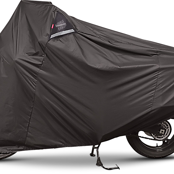 Caracteristicas: Feature four built-in alarm sleeves so you can make your bike more secure by adding Secure Alarm Systems to your cover Alarms sold separately Fabricated from heavy polyester with waterproof undercoating and Moisture-Guard™ ventilation system Heat shields allow immediate use after riding Interior liner protects windshield Waterproof, with heat-sealed, taped seams Reinforced grommets for cable or bar locks and elastic bottom rim for snug fit