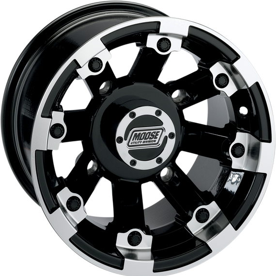 Caracteristicas: "Moose Utility Division" center cap included with each wheel (must order lug nuts separately); See related products Available in gloss black with chrome center caps and black torx head rivets 100% X-rayed on the production line to assure quality and reliability Built to meet the demands of the ATV/UTV market Meet or exceed OEM required load capacities Ideal for woods, deep mud or sand