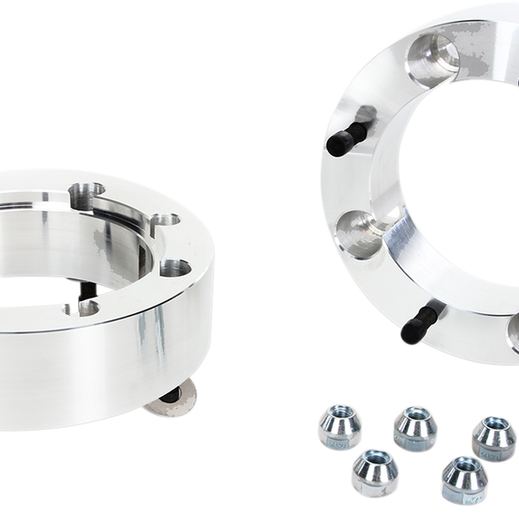 Caracteristicas: Enable use of larger aftermarket tires that won't rub against shocks, struts and/or exhaust Increase stability by moving wheels out slightly from hubs and shocks No OEM studs are required to be removed; stud extenders are not used. Wide Tracs bolt to OEM studs; wheel is then bolted to grade 8 Wide Trac stud (included). Spacers are comparable to automotive-grade wheel adapters; design is the strongest available for ATVs.