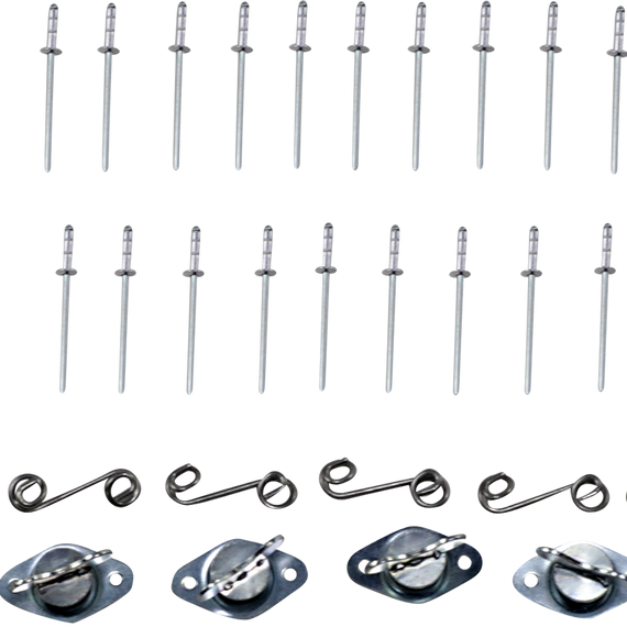 Caracteristicas: Takes the guesswork out of mounting both racing fiberglass or ABS replacement bodywork Includes all the necessary hardware to do the job right the first time around Each kit contains six fasteners and all supporting hardware including anti-scratch washers, rivets and springs or clips