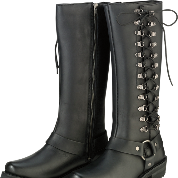 Caracteristicas: Specifically designed for women Waterproof full-grain leather construction Interior zipper closure Oil-resistant outsole Anti-bacterial moisture-wicking lining 16" tall classic harness with square toe design