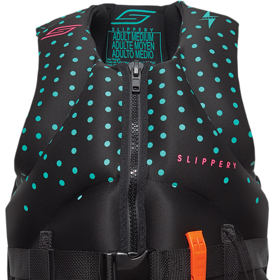 Caracteristicas: U.S. Coast Guard approved type 3 PFD D” ring for clip style lanyards Front zip entry with two 1.5” belts for added strength V-back for custom fit Neoprene construction for maximum comfort Safety whistle