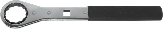 Caracteristicas: Reversible ratcheting wrench used to install and remove 36 mm axle nuts Low profile wheel allows access to the nut without removal of the exhaust Double-hexagon flank drive wheel
